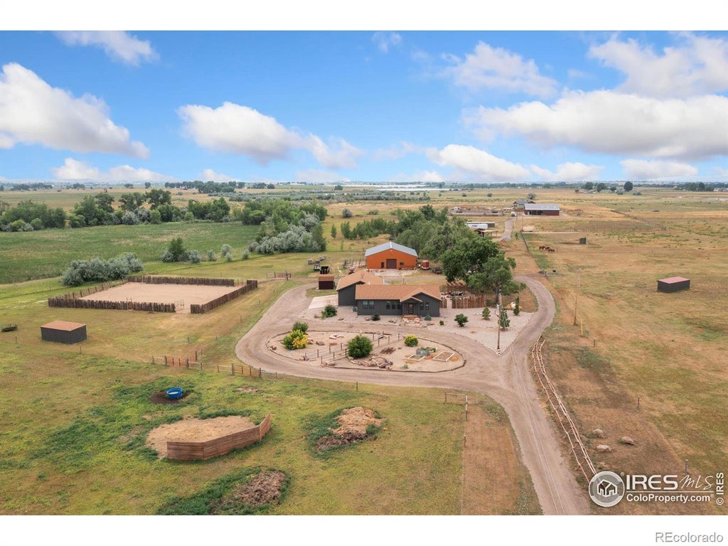 Dream equestrian estate on 38 acres! This sprawling property is fully loaded with thoughtfully designed features and horse-ready amenities. Pull in through the circular drive and be greeted by a low-maintenance xeriscape yard that blends effortlessly into the natural beauty of the surroundings. The single-level, custom-built home strikes a beautiful balance between rustic design and modern comforts, featuring an open layout with vaulted ceilings, stained concrete radiant heated floors and new A/C! Craftsmanship shines through with wood, stone, and industrial details that deliver a sleek warm aesthetic. The living room is centered around a stained steel ethanol fireplace that adds bold style and cozy ambiance. Enjoy cooking your favorite meals in the kitchen, equipped with stainless steel appliances, granite counters, tiled backsplash, and a large island with bar seating. Two bedrooms are positioned on opposite ends of the home, for added privacy, each with an elegant chandelier and space to relax. The primary includes a walk-in closet, a private ensuite bath. The sunroom is flexible enough to become a home office, guest room, nursery, studio, or reading nook. Outdoor living is elevated with a fenced backyard oasis, complete with a concrete patio that's already equipped with a hot tub, a pergola for lazy afternoons, plus a two-tier raised deck with sun shades and warm lighting. The attached 3-car insulated garage includes built-in cabinets and a workbench, perfect for hobbies or additional storage. The fully insulated 2,688 sqft barn is the heart of the property's equestrian setup. Inside, you'll find a tack room, hay storage, utility area, three rubber-matted stalls, and tall doors big enough for tractors or trailers. A fully fenced riding arena, four pastures with horse-safe fencing, and multiple loafing sheds round out the property's horse-friendly amenities. Quick access to I-25 keeps everything within reach. 3rd BR is non-conforming.