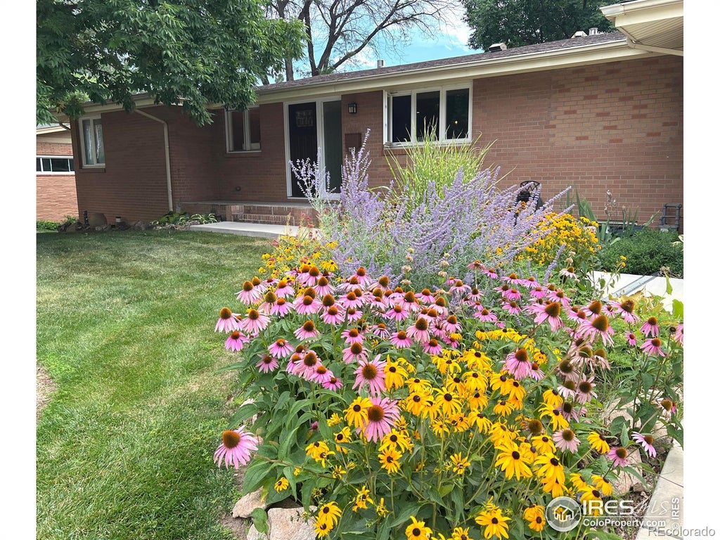 Completely updated 1964 brick ranch with a walk-out lower level and mountain views. Perched atop a hill to overlook a scenic wildlife corridor on the Loveland-Greeley canal in a mature cul-de-sac location and NO HOA. This unique property features a private primary suite on the main level complete with a luxurious 5-piece bath, spacious walk-in closet, and convenient in-suite stacking washer and dryer. Kitchen has a large island with granite and an extra prep sink along with a beverage fridge. You'll enjoy two laundry rooms, hickory hardwood floors, a full crawlspace with sufficient headroom to stand (for some), and a basement-level cellar with access to the backyard, that can be used as storage or perhaps your future wine cellar. The sun room has mountain views where you can sit and enjoy the sunset. The fenced backyard features an enclosed porch with an overhead fan and a composite deck for your grill and outdoor table. Recent updates include new carpet, garage doors and openers, deck, dual furnaces, along with updated electrical, plumbing, tankless water heater, and windows. One mile from active downtown Loveland. Seller is a licensed Colorado real estate broker.