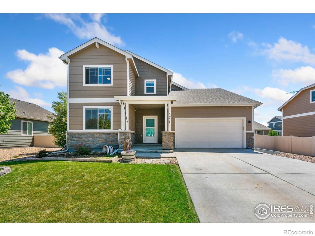 This charming two-story home in the Harvest Village community delivers both functionality and style with room to spread out and enjoy life inside and out. As you enter the home, a welcoming foyer leads you into a spacious open main living area, where you can enjoy gatherings and everyday life. The kitchen is a highlight, featuring stainless steel appliances, granite countertops, a stylish subway tiled backsplash, pantry for additional storage, and a center island that provides additional prep space and seating. A dedicated office near the front of the house provides the perfect space to focus and retreat for some quiet productivity, with just the right amount of separation from the main living space. Head upstairs to find three bedrooms, including the primary suite with its own ensuite bath and walk-in closet. An upstairs laundry brings ease and convenience to your daily routine. The finished basement adds even more value, offering a versatile living area with a bar, plus a fourth bedroom that's perfect for guests, storage, or more flexibility as your needs change. Outside, the fenced backyard features a concrete patio with a pergola, creating a wonderful outdoor living space for al fresco dining or enjoying the fresh air. Assorted newly planted trees enhance the beauty and privacy of the yard, contributing to a serene and inviting outdoor environment. The huge 3-car garage provides plenty of space for vehicles and storage. This vibrant community also includes a pool, playground, and nearby parks and trails, making it easy to get out and explore or unwind. Plus, with easy access to local amenities, this home is sure to meet all your needs.