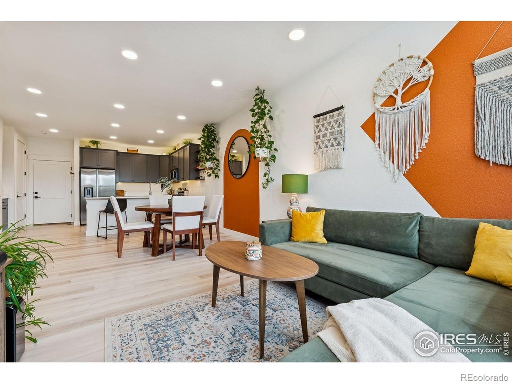 A quiet elegance defines life at 1922 Naturita Street-a thoughtfully appointed home nestled in a community designed for connection and ease. Located just minutes from both downtown Loveland and Fort Collins, this residence offers the perfect balance between natural beauty and urban access. Set against a backdrop of foothill views and adjacent greenspace, the home's modern fa ade opens into a bright, open-concept interior curated with style and intention. Boho-inspired design elements are elevated by high-end finishes, including soft-close cabinetry, a full suite of included appliances, and smart home integrations that simplify daily living. The heart of the home-a sun-drenched living space-flows effortlessly from kitchen to dining to lounge, making it ideal for relaxed evenings or casual gatherings. Three well-proportioned bedrooms and two-and-a-half baths offer space for both rest and retreat, while a full, unfinished basement provides room to grow. A fenced front yard brings in a sense of privacy without sacrificing community, and the oversized two-car garage ensures comfort in every season. Residents enjoy a low-maintenance lifestyle thanks to HOA-managed exterior care, plus access to a community dog park-perfect for four-legged companions. With a tankless water heater, newer construction quality, and effortless access to outdoor and cultural amenities, 1922 Naturita is a rare opportunity to live with both intention and ease.