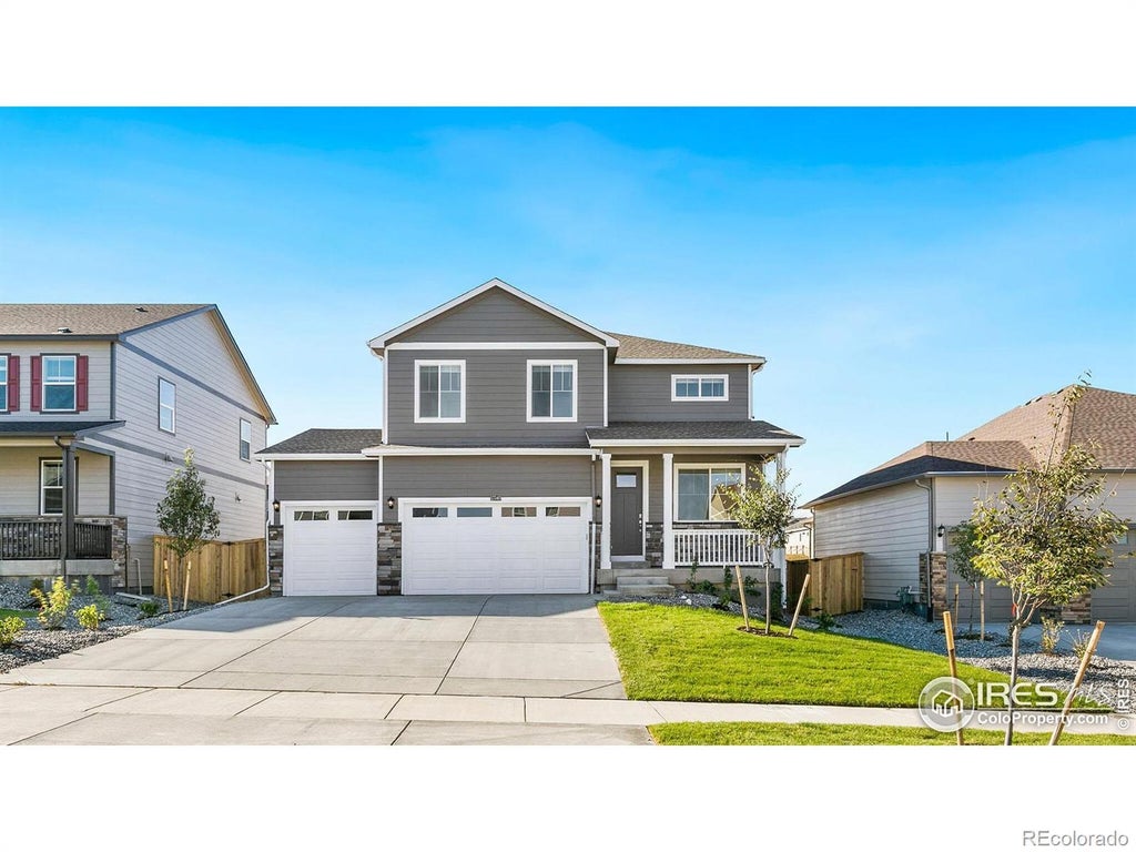 Fantastic opportunity to get into a brand-new home on a full basement (9' ceilings), with a 3 car garage and a block from the park! You will love the open design floorplan, the 9' ceilings, LVP throughout the main living areas and the front and backyard are fully landscaped! White contemporary cabinetry in the Kitchen with stunning quartz counters countertops, walk in pantry, gas range, and a full suite of stainless-steel appliances. Lots of included features: smart home technology, tankless hot water heater, A/C, and a beautiful front porch to enjoy the Colorado evenings on! Lakeside Canyon is perfectly located in the Mead/Firestone/Longmont area, offering quick access to I 25, with a big central park and playground, plus 2 dog parks, a picnic Pavilion and miles of trails. Conveniently close to the Peninsula state park too! Come live playfully at Lakeside Canyon! ***Photos are representative and not of actual property***